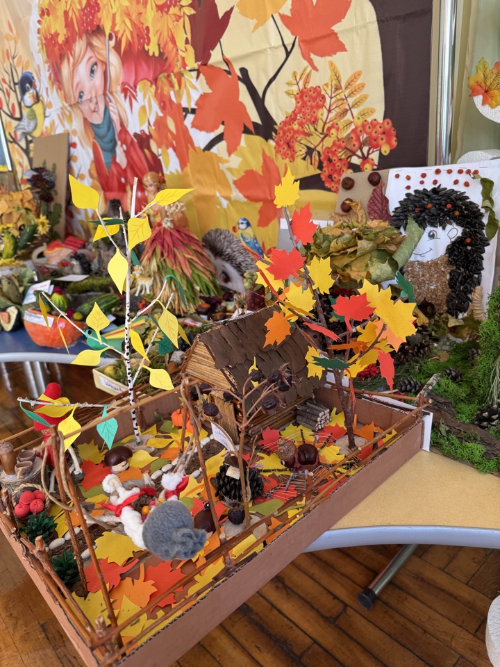 Юные художники творили, фантазировали, изображали осеннюю природу в разных состояниях. Можно полюбоваться осенними натюрмортами, рисунками с лесными обитателями и композициями из природного материала. Участники выставки с радостью и гордостью любуются своими работами, обсуждают картины друг с другом, анализируют вместе с воспитателями цветовую гамму, настроение картин и явления природы.